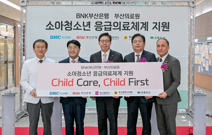 | BNKºÎ»êÀºÇà(ÀºÇàÀå ¹æ¼ººó)Àº 13ÀÏ ¿ÀÀü, ¿¬Á¦±¸ ¼ÒÀç ºÎ»êÀÇ·á¿ø¿¡¼ ÃÊ·Ï¿ì»ê¾î¸°ÀÌÀç´Ü°ú ÇÔ²² ‘¼Ò¾ÆÃ»¼Ò³â ÀÀ±ÞÀÇ·áü°è’ Áö¿ø Àü´Þ½ÄÀ» °¡Á³´Ù.(»çÁø ¿ÞÂʺÎÅÍ ºÎ»êÀÇ·á¿ø ±èÈÖÅà ¿øÀå, BNKºÎ»êÀºÇà ¹æ¼ººó ÀºÇàÀå, ºÎ»ê±¤¿ª½Ã ¹ÚÇüÁØ ½ÃÀå, ºÎ»ê±¤¿ª½ÃÀÇȸ ¾È¼º¹Î ÀÇÀå, ÃÊ·Ï¿ì»ê¾î¸°ÀÌÀç´Ü ±èÈñ¼® ºÎ»êÁö¿ªº»ºÎÀå) |