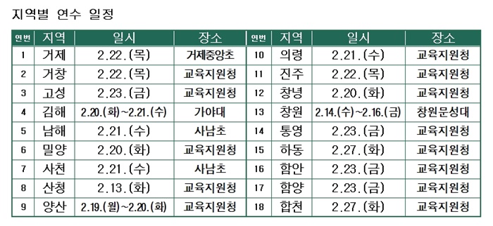 [½Ã»çÄÚ¸®¾ÆÀú³Î=Á¤Á¾¹Î ¼±ÀÓ±âÀÚ] °æ³²µµ±³À°Ã»(±³À°°¨ ¹ÚÁ¾ÈÆ)Àº 2¿ù 13ÀϺÎÅÍ 27ÀϱîÁö 18°³ ½Ã±ºÀÇ ÃʵîÇб³ 1, 2Çг⠴ãÀÓ ¿¹Á¤ ±³»ç¿Í ±³À°°úÁ¤ ¾÷¹« ´ã´ç ±³¿ø 3,000¿© ¸íÀ» ´ë»óÀ¸·Î ‘2024Çг⵵ 1, 2Çг⠰³Á¤ ±³°ú ±³À°°úÁ¤ Áö¿ªº° ¿¬¼ö’¸¦ ÁøÇàÇÑ´Ù.