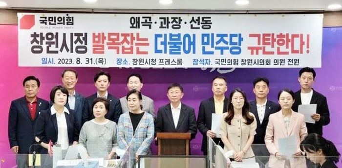 | ±¹¹ÎÀÇÈû °æ³² â¿ø½ÃÀÇȸ ÀÇ¿ø´ÜÀÌ Áö³ÇØ 8¿ù 31ÀÏ Ã¢¿ø½Ãû ÇÁ·¹½º¼¾ÅÍ¿¡¼ °øÁ÷¼±°Å¹ý À§¹Ý ÇøÀÇ·Î ÀçÆÇÀ» ¹Þ°í ÀÖ´Â È«³²Ç¥ â¿ø½ÃÀå¿¡ ´ëÇÑ ´õºÒ¾î¹ÎÁÖ´çÀÇ Á¤Ä¡ °ø¼¼¸¦ Áß´ÜÇ϶ó´Â ¼º¸íÀ» ¹ßÇ¥Çϰí ÀÖ´Ù. /ÀÚ·á»çÁø |