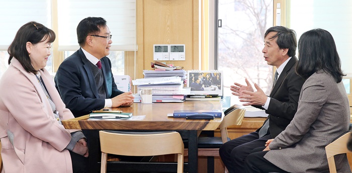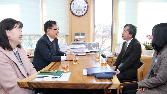 [½Ã»çÄÚ¸®¾ÆÀú³Î=Á¤Á¾¹Î ¼±ÀÓ±âÀÚ] È«³²Ç¥ â¿øÆ¯·Ê½ÃÀåÀÌ 16ÀÏ ¿ÀÈÄ ½Ãû Áý¹«½Ç¿¡¼ ½ÅÀÓ ÀλçÂ÷ ¹æ¹®ÇÑ Á¶°æÃ¶ °æ³²µ¿ºÎº¸ÈÆÁöûÀå°ú ȯ´ãÇß´Ù.
