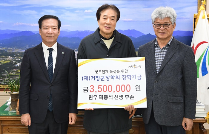 [½Ã»çÄÚ¸®¾ÆÀú³Î=Á¤Á¾¹Î ¼±ÀÓ±âÀÚ] ¸é¿ì °ûÁ¾¼® ¼±»ý ÈÄ¼Õ 7¸íÀÌ Áö³ 16ÀÏ Áö¿ª ¿ì¼ö ÀÎÀç À°¼ºÀ» À§ÇÑ ¸¶À½À» ´ã¾Æ (Àç)°ÅⱺÀåÇÐȸ¿¡ ÀåÇÐ±Ý 350¸¸ ¿øÀ» ±âŹÇß´Ù.