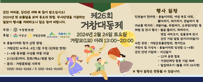 [½Ã»çÄÚ¸®¾ÆÀú³Î=Á¤Á¾¹Î ¼±ÀÓ±âÀÚ] °Å⹮ȿø(¿øÀå ¾Èö¿ì)ÀÌ ÁÖ°üÇÏ°í °Åⱺ°ú °ÅⱺÀÇȸ, NH³óÇù °ÅⱺÁöºÎ, °Åⱺ»ê¸²Á¶ÇÕÀÌ ÈÄ¿øÇÏ´Â Á¦26ȸ °Åâ´ëµ¿Á¦°¡ ¿À´Â 24ÀÏ Åä¿äÀÏ(À½·Â 1¿ù 15ÀÏ) °Åâ±³ ¾Æ·¡¿¡¼ °³ÃֵȴÙ.