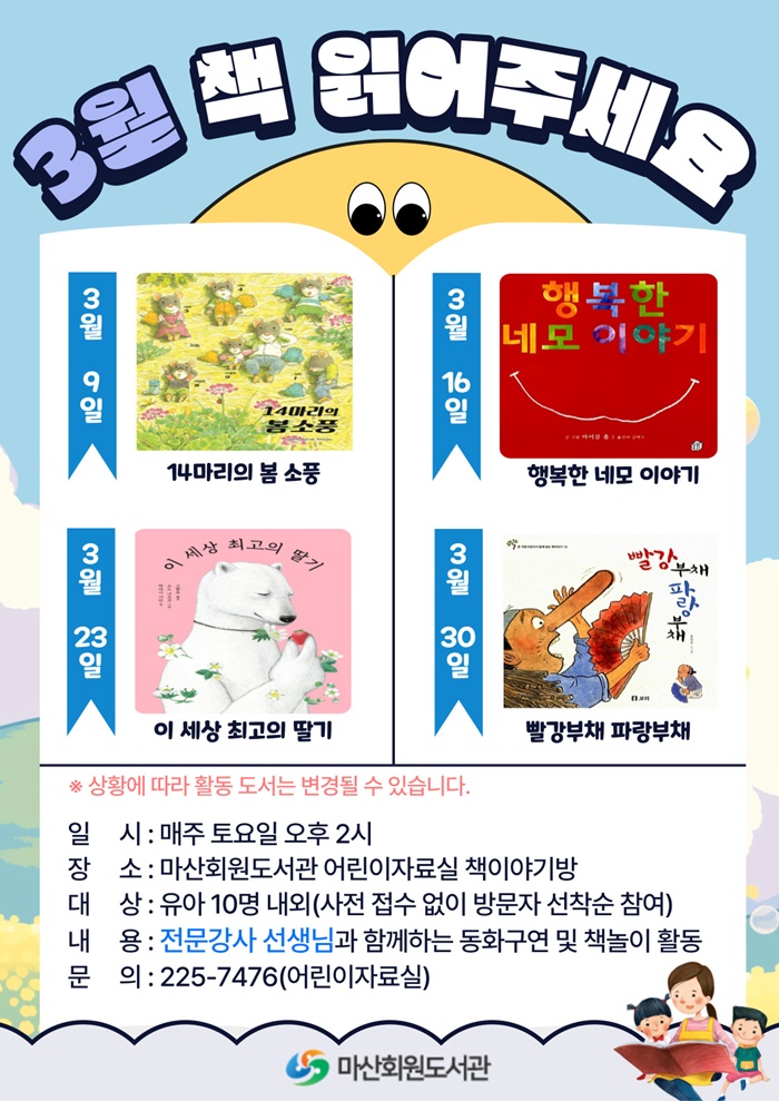 Ã¥ ÀоîÁÖ¼¼¿ä(µ¿È±¸¿¬)´Â Ã¥ ÀоîÁÖ±â¿Í Ã¥³îÀÌ È°µ¿À» ÁøÇàÇϸç, ¸ÅÁÖ Åä¿äÀÏ ¿ÀÈÄ 2½Ã¿¡ º°µµ ½Åû ¾øÀÌ ¹æ¹®ÇÏ¸é ¼±Âø¼øÀ¸·Î Âü¿©ÇÒ ¼ö ÀÖ´Ù.