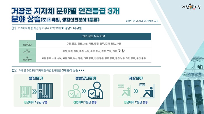 °ÅⱺÀº °æ³²µµ ³» À¯ÀÏÇÏ°Ô »ýȰ¾ÈÀü ºÐ¾ß¿¡¼ 1µî±ÞÀ» ¹Þ¾Ò°í ¹üÁË, »ýȰ¾ÈÀü, ÀÚ»ì ºÐ¾ß¿¡¼ µî±ÞÀÌ »ó½ÂµÇ¾î µî±Þ°³¼± ºÐ¾ß °³¼ö°¡ 3°³ ÀÌ»óÀ¸·Î °³¼±Á¤µµ ¿ì¼öÁö¿ªÀ¸·Îµµ ¼±Á¤µÆ´Ù.