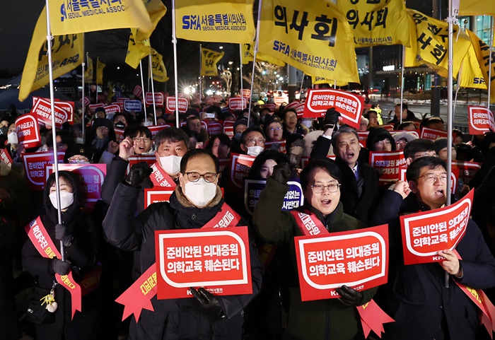 | ¼¿ï½ÃÀÇ»çȸ ¼Ò¼Ó ÀÇ»çµéÀÌ 22ÀÏ ¿ÀÈÄ ¼¿ï ¿ë»ê±¸ ´ëÅë·É½Ç ¾Õ¿¡¼ Á¤ºÎÀÇ Àǰú´ëÇÐ ÀÔÇÐ Á¤¿ø È®´ë¿¡ ¹Ý´ëÇÏ´Â ±È±â´ëȸ¸¦ Çϰí ÀÖ´Ù. /¿¬ÇÕ´º½º |