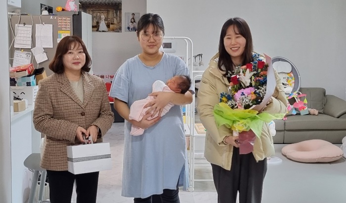 Ãá¾ç¸éÀå°ú Á÷¿øµéÀº ºÎºÎÀÇ ÁýÀ» ¹æ¹®ÇØ °Ç°ÇÑ ¾ÆÀÌÀÇ Åº»ýÀ» ÃàÇÏÇÏ´Â ²É´Ù¹ßÀ» Àü´ÞÇÏ¸ç ±â»ÝÀ» ÇÔ²² ³ª´³´Ù.
