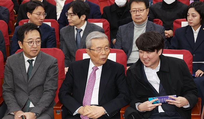 | 17ÀÏ ±¹È¸ ÀÇ¿øÈ¸°ü¿¡¼ ¿¸° »õ·Î¿î¼±Åà â´ç´ëȸ¿¡¼ ÀÌÁؼ® Àü ±¹¹ÎÀÇÈû ´ëÇ¥¿Í ±èÁ¾ÀÎ Àü ºñ´ëÀ§¿øÀåÀÌ ´ëÈÇϰí ÀÖ´Ù. ¿ÞÂÊÀº ±Ýż· °øµ¿´ëÇ¥. /¿¬ÇÕ´º½º |