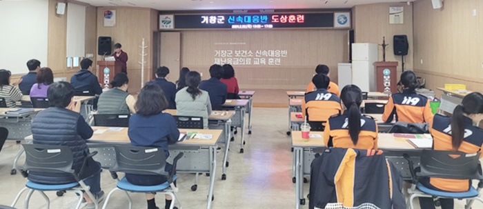 [½Ã»çÄÚ¸®¾ÆÀú³Î=Á¤Á¾¹Î ¼±ÀÓ±âÀÚ] °ÅⱺÀº Áö³ 22ÀÏ º¸°Ç¼Ò 2Ãþ ´ëȸÀǽǿ¡¼ °æ³²ÀÀ±ÞÀÇ·á¼¾ÅÍ ÁÖ°ü º¸°Ç¼Ò ½Å¼Ó´ëÀÀ¹Ý °ú °Åâ¼Ò¹æ¼ ±¸±Þ´ë¿ø, °ÅâÀû½ÊÀÚº´¿ø ´ã´çÀÚ µî 23¸íÀ» ´ë»óÀ¸·Î Àç³´ëÀÀü°è °È ±³À°·ÈÆ·ÃÀ» ½Ç½ÃÇß´Ù°í ¹àÇû´Ù.