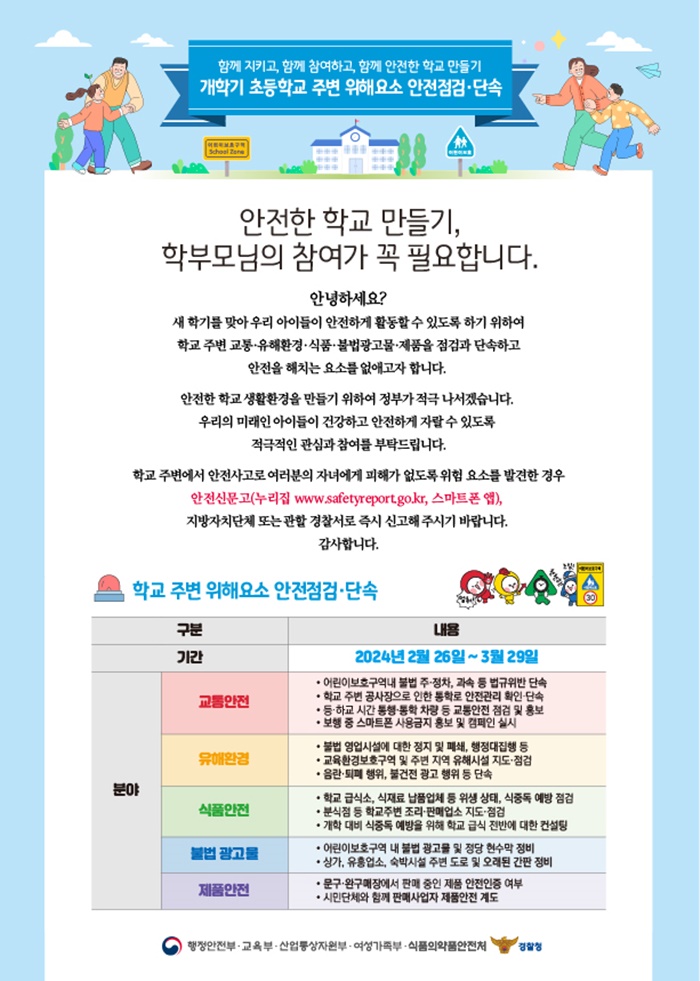 [½Ã»çÄÚ¸®¾ÆÀú³Î=±è¿¬ÇÐ ±âÀÚ] °æºÏµµ´Â º½ °³Çбâ(1Çбâ)¸¦ ´ëºñÇØ µµ³» ÃʵîÇб³ ÁÖº¯ ÅëÇзο¡ ´ëÇÑ ¾ÈÀü ȯ°æ Á¶¼ºÀ» À§ÇØ 2¿ù 26ÀϺÎÅÍ 3¿ù 29ÀÏ(5ÁÖ°£)±îÁö ³ëÈÄ °£ÆÇ ¾ÈÀüÁ¡°Ë·Á¤ºñ ¹× ºÒ¹ý±¤°í¹° ÀÏÁ¦Á¤ºñ¿¡ ³ª¼±´Ù.