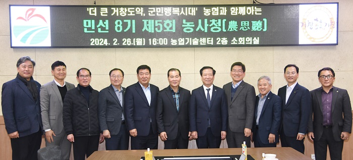 [½Ã»çÄÚ¸®¾ÆÀú³Î=Á¤Á¾¹Î ¼±ÀÓ±âÀÚ] °ÅⱺÀº Áö³ 26ÀÏ ³ó¾÷±â¼ú¼¾ÅÍ È¸Àǽǿ¡¼ ±¸Àθð °Åⱺ¼ö, NH³óÇùÀºÇà °ÅⱺÁöºÎÀå, Áö¿ª³óÇùÁ¶ÇÕÀå µî 9¸íÀÌ Âü¿©ÇÑ °¡¿îµ¥ ³ó¾÷ ÇöÀå ¸ñ¼Ò¸®¸¦ µè±â À§ÇÑ Á¦5ȸ ³ó»çûÀ» ¿î¿µÇß´Ù.