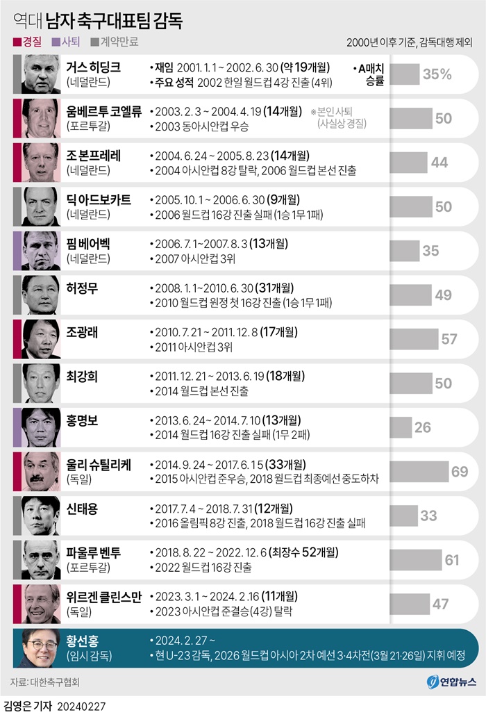 Á¤Çؼº Àü·Â°ÈÀ§¿øÀåÀº "Ȳ °¨µ¶Àº Ã౸Çùȸ ¼Ò¼Ó ÁöÈÖÀÚÀ̰í, Ç×Àú¿ì ¾Æ½Ã¾È°ÔÀÓ ¿ì½ÂÀ¸·Î ÃÖ±Ù ¼º°úµµ º¸¿©ÁáÀ¸¸ç ±¹Á¦´ëȸ °æÇè, ¾Æ½Ã¾Æ Ã౸ ÀÌÇØµµ¸¦ °®Ãè´Ù"°í ¼±ÀÓ ÀÌÀ¯¸¦ ¹àÇû´Ù.