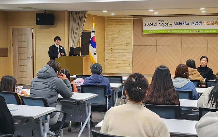 [½Ã»çÄÚ¸®¾ÆÀú³Î=±è¿¬ÇÐ ±âÀÚ] ¾Èµ¿½Ã´Â 27ÀÏ ÁֹΰǰÁö¿ø¼¾ÅÍ º¸°Ç±³À°½Ç¿¡¼ 2024³â ¾Èµ¿½Ã µå¸²½ºÅ¸Æ® ÃʵîÇб³ ½ÅÀÔ»ý ºÎ¸ð±³À°À» ½Ç½ÃÇß´Ù.