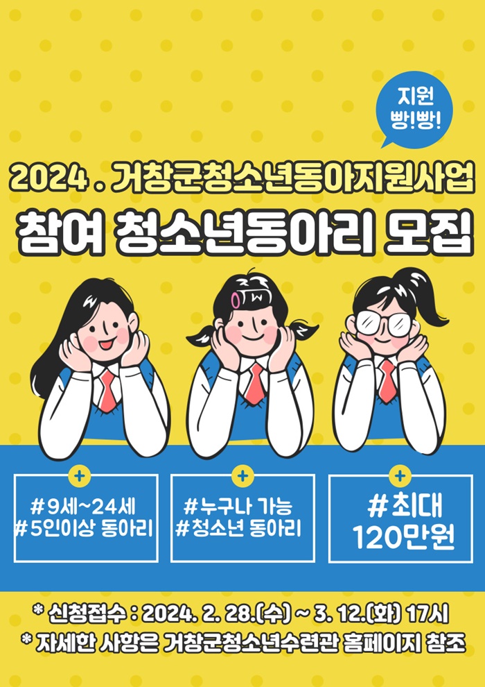 [½Ã»çÄÚ¸®¾ÆÀú³Î=Á¤Á¾¹Î ¼±ÀÓ±âÀÚ] °ÅⱺÀº ÀÚ¹ßÀûÀ̰í ÁÖüÀûÀΠû¼Ò³âµ¿¾Æ¸® Ȱµ¿ Ȱ¼ºÈ¿Í ´Ù¾çÇÑ Àç´É°è¹ß ¹× Áø·Î Ž»ö ±âȸ¸¦ Á¦°øÇϱâ À§ÇØ 28ÀϺÎÅÍ 3¿ù 12ÀϱîÁö ‘2024³â °Åⱺ û¼Ò³âµ¿¾Æ¸®È°µ¿ Áö¿ø»ç¾÷’ ¿¡ Âü¿© ÇÒ Ã»¼Ò³â µ¿¾Æ¸®¸¦ ¸ðÁýÇÑ´Ù.