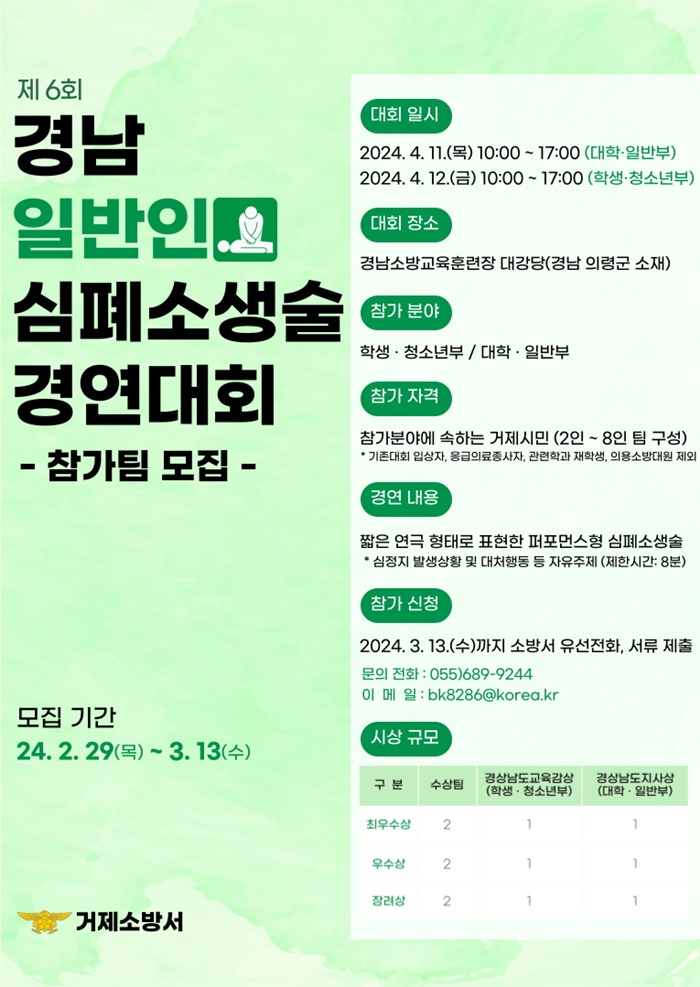 [½Ã»çÄÚ¸®¾ÆÀú³Î=Á¤Á¾¹Î ¼±ÀÓ±âÀÚ] °ÅÁ¦¼Ò¹æ¼(¼Àå Àü¼öÁø)´Â Á¦6ȸ °æ³² ÀϹÝÀÎ ½ÉÆó¼Ò»ý¼ú °æ¿¬´ëȸ °ÅÁ¦´ëÇ¥ Âü°¡ÆÀÀ» 3¿ù 13ÀϱîÁö ¸ðÁýÇÑ´Ù°í 29ÀÏ ¹àÇû´Ù.