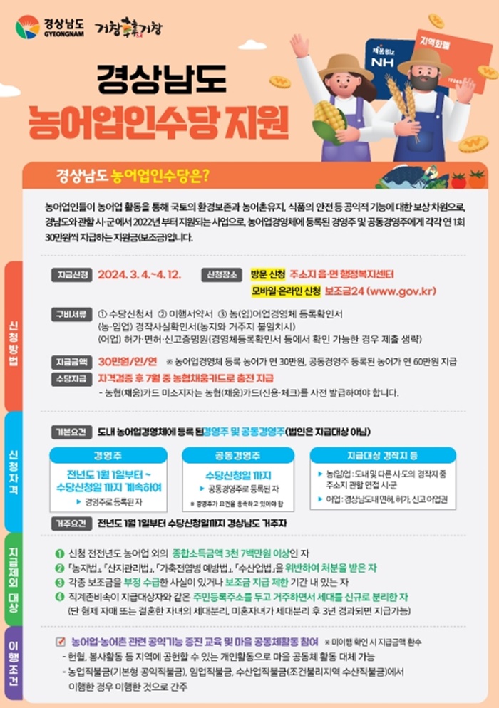 2023³â 1¿ù 1ÀϺÎÅÍ ¼ö´ç ½ÅûÀϱîÁö °æ»ó³²µµ¿¡ °è¼ÓÇÏ¿© ÁÖ¼Ò¸¦ µÎ°í, ³ó¾î¾÷°æ¿µÃ¼¿¡ µî·ÏÇÑ ³ó¾î°¡¸é ½ÅûÀÌ °¡´ÉÇÏ´Ù.