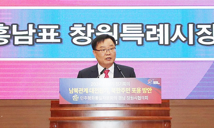 | È«³²Ç¥ â¿ø½ÃÀåÀÌ ¹ÎÁÖÆòÈÅëÀÏÀÚ¹®È¸ÀÇ Ã¢¿ø½ÃÇùÀÇȸ 2024³â ù Á¤±âȸÀÇ¿¡¼ Ãà»ç¸¦ Çϰí ÀÖ´Ù. |