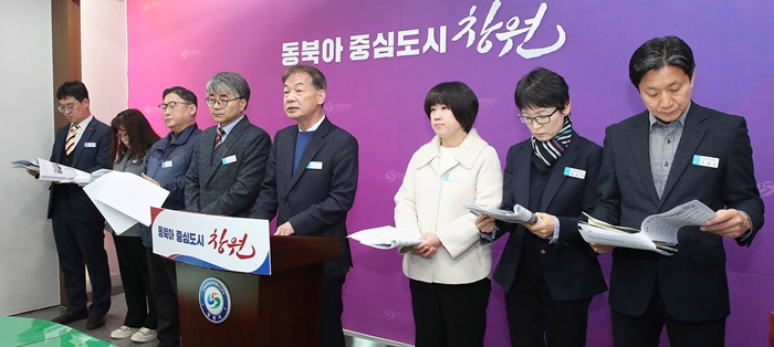 | È«Àç½Ä â¿øº¹ÁöÀç´Ü ÀÌ»çÀåÀÌ 6ÀÏ Ã¢¿ø½Ãû ÇÁ·¹½º¼¾ÅÍ¿¡¼ Á¤Ã¥ºê¸®ÇÎÀ» Çϰí ÀÖ´Ù. |