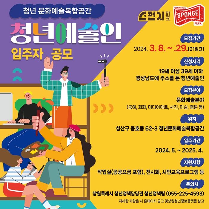 [½Ã»çÄÚ¸®¾ÆÀú³Î=Á¤Á¾¹Î ¼±ÀÓ±âÀÚ] â¿øÆ¯·Ê½Ã(½ÃÀå È«³²Ç¥)´Â Áö¿ª û³âÀÇ ¹®È¿¹¼ú Ȱ¼ºÈ¿¡ ±â¿©Çϱâ À§ÇØ Ã¢¿ø û³â ¹®È¿¹¼úº¹ÇÕ°ø°£(¼º»ê±¸ ¿ëÈ£µ¿ 62-3 Á¶¼º¿¹Á¤) ³» ÀÛ°¡ °ø°£¿¡ ÀÔÁÖÇÒ Ã»³â¿¹¼úÀÎÀ» ¸ðÁýÇÑ´Ù°í 7ÀÏ ¹àÇû´Ù.