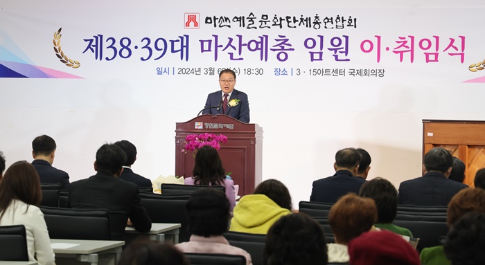 [½Ã»çÄÚ¸®¾ÆÀú³Î=Á¤Á¾¹Î ¼±ÀÓ±âÀÚ] ¸¶»ê¿¹¼ú¹®È´ÜüÃÑ¿¬ÇÕȸ°¡ Á¦39´ë ±è¼ø¾Ö ½ÅÀÓ È¸Àå üÁ¦ÀÇ ´éÀ» ¿Ã·È´Ù.