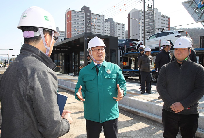 | È«³²Ç¥ â¿øÆ¯·Ê½ÃÀåÀÌ 8ÀÏ ¿ÀÈÄ ¿øÀÌ´ë·Î S-BRT °ø»ç ÇöÀåÀ» ã¾Æ ÁøÇà »óȲÀ» Á÷Á¢ Á¡°ËÇϰí, ½Ã¹Î ºÒÆí ÃÖ¼ÒÈ ¹æ¾È ¸¶·Ã¿¡ ³ª¼¹´Ù. |