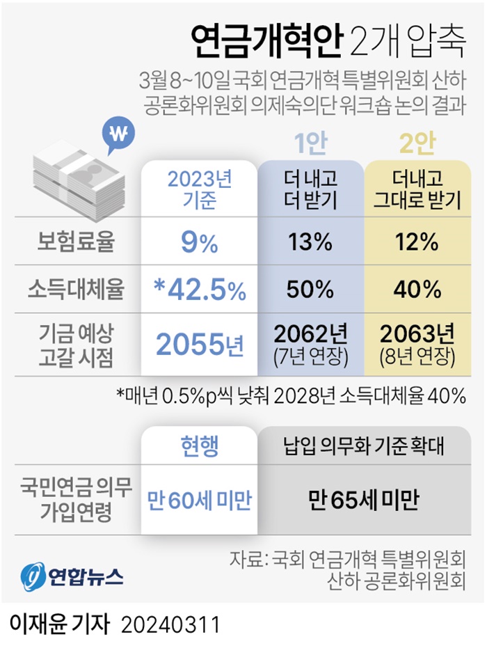±¹È¸ ¿¬±Ý°³Çõ Ưº°À§¿øÈ¸ »êÇÏ °ø·ÐÈÀ§¿øÈ¸°¡ ¿¬ ÀÇÁ¦¼÷ÀÇ´Ü ¿öÅ©¼ó¿¡¼ '´õ ³»°í ´õ ¹Þ±â', '´õ ³»°í ±×´ë·Î ¹Þ±â' µî 2°¡Áö ±¹¹Î¿¬±Ý °³Çõ¾ÈÀÌ Ã¤ÅõƴÙ.
