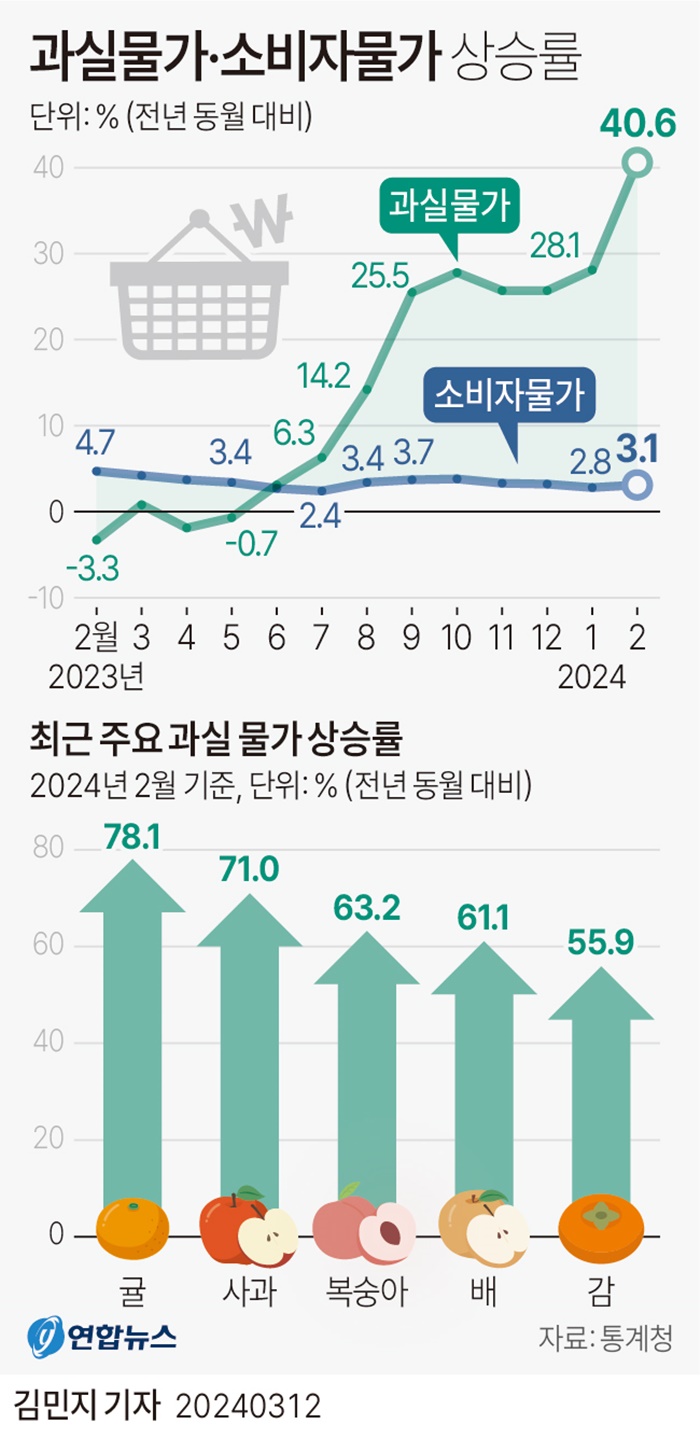 12ÀÏ Åë°èû ±¹°¡Åë°èÆ÷Åп¡ µû¸£¸é Áö³´Þ °ú½Ç ¹°°¡ »ó½Â·üÀº 40.6%·Î Àüü ¼ÒºñÀÚ¹°°¡ »ó½Â·ü(3.1%)º¸´Ù 37.5%Æ÷ÀÎÆ® ³ô¾Ò´Ù.