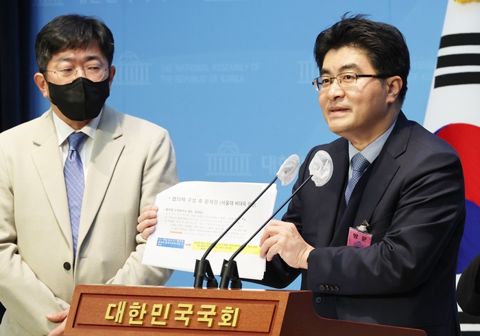 | ¹æÀç½Â ¼¿ïÀÇ´ë ±³¼öÇùÀÇȸ ºñ»ó´ëÃ¥À§¿øÀåÀÌ 12ÀÏ ±¹È¸¿¡¼ ÀÇ´ëÁõ¿ø °ü·Ã ±âÀÚȸ°ßÀ» Çϰí ÀÖ´Ù. /¿¬ÇÕ´º½º |