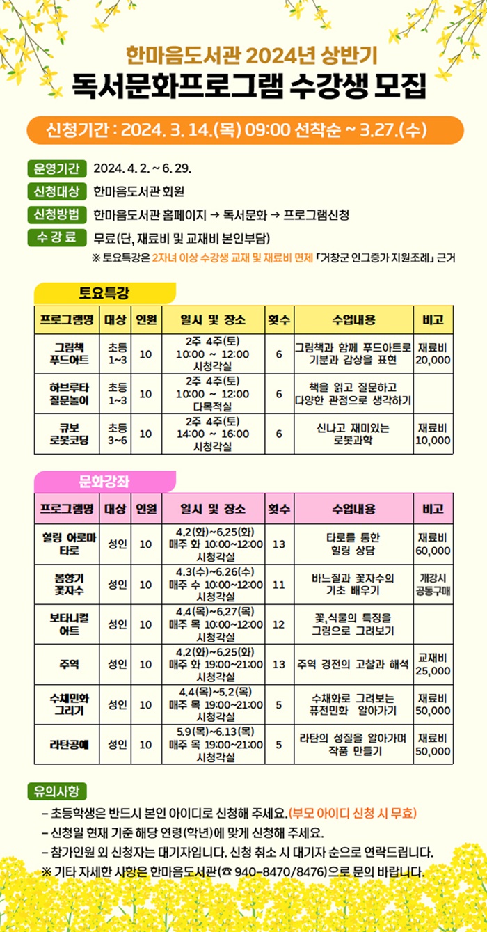[½Ã»çÄÚ¸®¾ÆÀú³Î=Á¤Á¾¹Î ¼±ÀÓ±âÀÚ] °Åⱺ ÇѸ¶À½µµ¼°üÀº 3¿ù 14ÀϺÎÅÍ ¼ºÀΰú Ãʵî»ýÀ» ´ë»óÀ¸·Î '2024³â »ó¹Ý±â µ¶¼¹®ÈÇÁ·Î±×·¥' ¼ö°»ýÀ» ¼±Âø¼ø ¸ðÁýÇÑ´Ù.