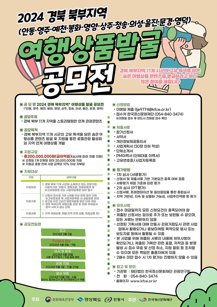 [½Ã»çÄÚ¸®¾ÆÀú³Î=±è¿¬ÇÐ ±âÀÚ] ¾Èµ¿½Ã¿Í Çѱ¹Á¤½Å¹®ÈÀç´ÜÀº °ü±¤°ÅÁ¡µµ½Ã À°¼º»ç¾÷ÀÇ Çٽɻç¾÷ÀÎ ½º¸¶ÀÏÆ®¸³200 °³¹ß ¹× ¿î¿µÀ» À§ÇÑ '2024 °æºÏ ºÏºÎÁö¿ª ¿©Çà»óǰ ¹ß±¼ °ø¸ðÀü'À» °³ÃÖÇÑ´Ù.