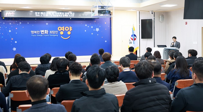 [½Ã»çÄÚ¸®¾ÆÀú³Î=±è¿¬ÇÐ ±âÀÚ] ¿µ¾ç±º(±º¼ö ¿ÀµµÃ¢)Àº 12ÀÏ ±ºÃ» ´ëȸÀǽǿ¡¼ ±¹ºñ»ç¾÷ ½Ç¹« Á÷¿øµéÀ» ´ë»óÀ¸·Î ‘Á¤ºÎ¿¹»êÀÌÇØ ¹× ±¹ºñÈ®º¸Àü·« Ư°’À» ÁøÇàÇß´Ù.