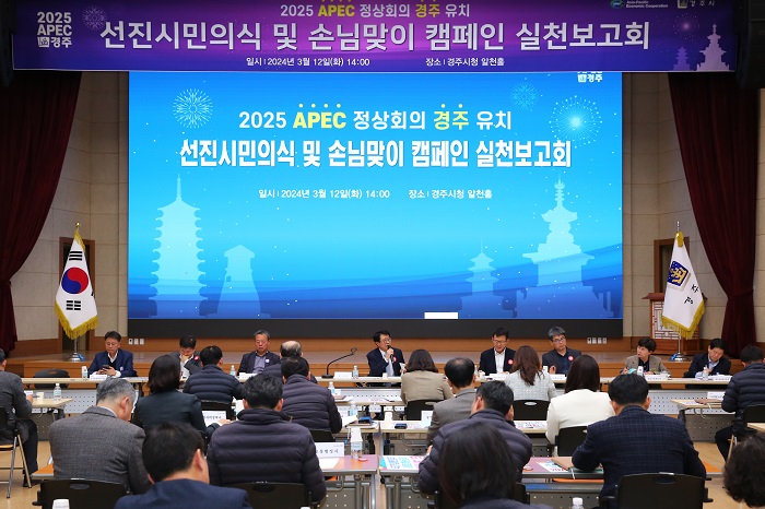 ½Ã´Â 12ÀÏ ½Ãû ¾ËõȦ¿¡¼ APEC°æÁÖÀ¯Ä¡ÃßÁø´ÜÀåÀ» ¸Ã°í ÀÖ´Â ±è¼ºÇÐ ºÎ½ÃÀå ÁÖÀç·Î ½Ç‧±¹‧»ç¾÷¼Òº° Àü ºÎ¼°¡ Âü¿©ÇÑ °¡¿îµ¥, 2025 APEC Á¤»óȸÀÇ °æÁÖ À¯Ä¡¸¦ À§ÇÑ ‘¼±Áø½Ã¹ÎÀÇ½Ä ¹× ¼Õ´Ô¸ÂÀÌ Ä·ÆäÀÎ ½Çõº¸°íȸ’¸¦ ¿¾ú´Ù°í ¹àÇû´Ù.