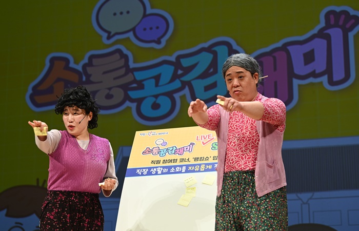 ƯÈ÷ ‘¼ÒÅë·°ø°¨·Àç¹Ì ¶óÀÌºê ¼î’¿¡´Â ûµµ Çѱ¹Äڹ̵ðŸ¿î¿¡¼ ¸ÅÁÖ ÁÖ¸»¸¶´Ù °ø¿¬ÇÏ´Â ‘´õÅ«°³±×´Ü’ ±è¿ëÇö(41), À¯¿µ¼·(40), ÀÌ¿ëÇå(45), ÃÖÀ¯½Â(41) 4ÀιæÀÌ Ãâ¿¬ÇØ °ø°¨´ë¸¦ ³ÐÈ÷´Â °³±×·Î Á÷ÀåÀÎÀÇ ¾î·Á¿òÀ» ³ª´©°í ¿ôÀ½À» Àü´ÞÇØ Á÷¿øµéÀÇ Å« È£ÀÀÀ» ¾ò¾ú´Ù.