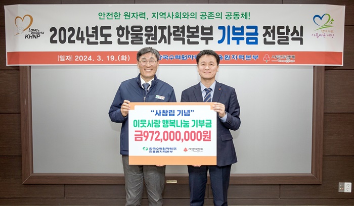 [½Ã»çÄÚ¸®¾ÆÀú³Î=±è¿¬ÇÐ ±âÀÚ] Çѱ¹¼ö·Â¿øÀÚ·Â(ÁÖ) ÇÑ¿ï¿øÀڷº»ºÎ(º»ºÎÀå À̼¼¿ë, ÀÌÇÏ ÇѿﺻºÎ)´Â 19ÀÏ Ã¢¸³ 23ÁÖ³âÀ» ¸Â¾Æ °æºÏ»çȸº¹Áö°øµ¿¸ð±Ýȸ¿¡ ÀÌ¿ô»ç¶û Çູ³ª´® ±âºÎ±Ý 9¾ï 7,200¸¸ ¿øÀ» Àü´ÞÇß´Ù.