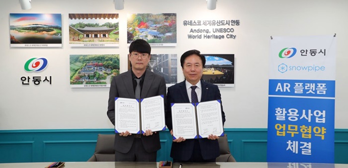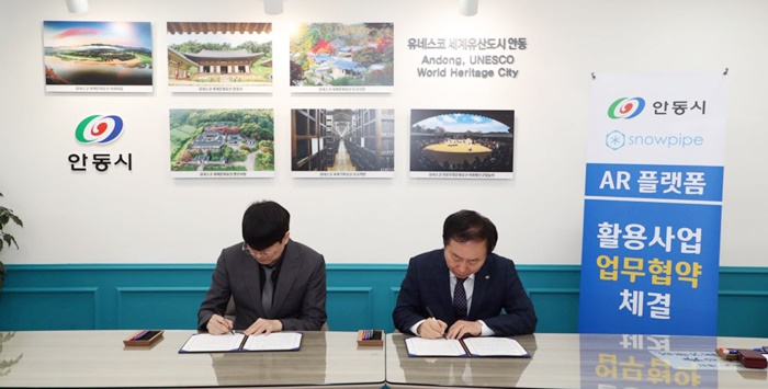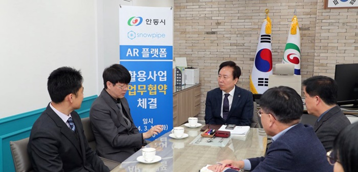 [½Ã»çÄÚ¸®¾ÆÀú³Î=±è¿¬ÇÐ ±âÀÚ] ¾Èµ¿½Ã(½ÃÀå ±Ç±ââ)´Â 19ÀÏ ½ÃÀå½Ç¿¡¼ ¢ß½º³ë¿ìÆÄÀÌÇÁ(´ëÇ¥ ±èÁ¤ÀÍ)¿Í ±Û·Î¹ú AR Ç÷§ÆûÀ» Ȱ¿ëÇÑ ±¹³»‧¿Ü °ü±¤°´ À¯Ä¡ Ȱ¼ºÈ¸¦ À§ÇÑ ¾÷¹«Çù¾à(MOU)À» ü°áÇß´Ù.