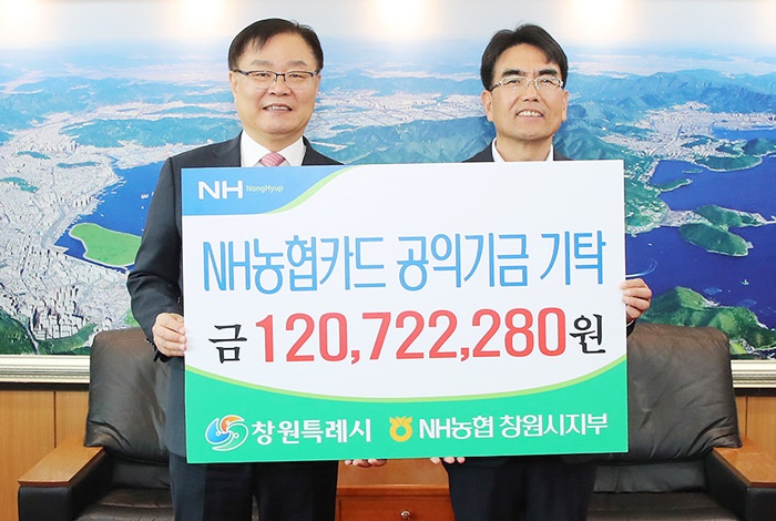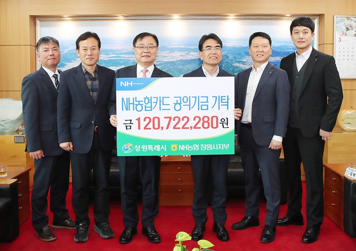 [½Ã»çÄÚ¸®¾ÆÀú³Î=Á¤Á¾¹Î ¼±ÀÓ±âÀÚ] ±è°©¹® NH³óÇùÀºÇà â¿ø½ÃÁöºÎÀå µî ³óÇù °ü°èÀÚ 3¸íÀº 20ÀÏ Ã¢¿ø½Ãû Á¢°ß½Ç¿¡¼ 2023³âµµ Á¦ÈÞÄ«µå Àû¸³±â±Ý 1¾ï 2,072¸¸ ¿øÀ» È«³²Ç¥ â¿øÆ¯·Ê½ÃÀå¿¡°Ô Àü´ÞÇß´Ù.