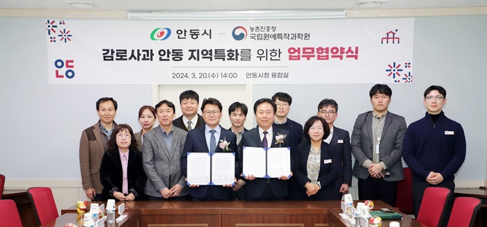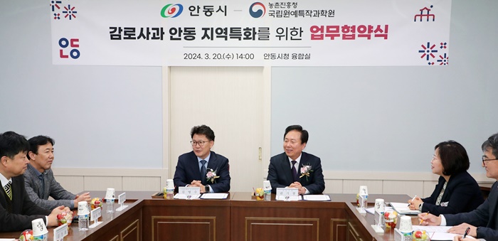 [½Ã»çÄÚ¸®¾ÆÀú³Î=±è¿¬ÇÐ ±âÀÚ] ¾Èµ¿½Ã´Â 20ÀÏ ¾Èµ¿½Ãû À¶Çսǿ¡¼, ³óÃÌÁøÈïû ±¹¸³¿ø¿¹Æ¯ÀÛ°úÇпø°ú ±¹³»À°¼º ½ÅǰÁ¾ »ç°ú ‘°¨·Î’ÀÇ Áö¿ªÆ¯È¸¦ À§ÇÑ ¾÷¹«Çù¾à(MOU)À» ü°áÇß´Ù.