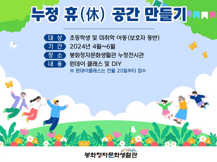 ´©Á¤ ÈÞ(ýÌ) °ø°£ ¸¸µé±â »ç¾÷Àº 3´ë ¹®È±Ç ÀÎÇÁ¶ó Ȱ¼ºÈ »ç¾÷ÀÇ ÀÏȯÀ¸·Î Á¤ÀÚ¹®È»ýȰ°üÀ» ã´Â °ü±¤°´À» ´ë»óÀ¸·Î ÇÏ´Â Àü½Ãȸ °³ÃÖ, Âü¿©․üÇè ÇÁ·Î±×·¥ ¿î¿µ, ¹ö½ºÅ· °ø¿¬ µîÀÌ ÀÖ´Ù.
