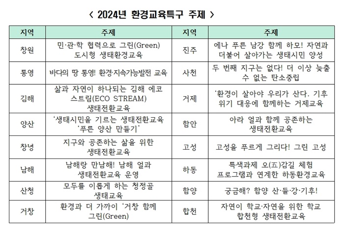 [½Ã»çÄÚ¸®¾ÆÀú³Î=Á¤Á¾¹Î ¼±ÀÓ±âÀÚ] °æ³²µµ±³À°Ã»(±³À°°¨ ¹ÚÁ¾ÈÆ)Àº ¿ÃÇØ ³²ÇØ·Çϵ¿·ÇÕõ Áö¿ª 3°÷À» Ãß°¡ÇÑ ÃÑ 16°÷À» ‘ȯ°æ±³À°Æ¯±¸’·Î ÁöÁ¤Çϰí 21ÀÏ º»Ã» ´ë°´ç¿¡¼ ÇØ´ç ±³À°Áö¿øÃ»¿¡ Ư±¸ ÁöÁ¤¼¿Í ÇöÆÇÀ» ¼ö¿©Çß´Ù.