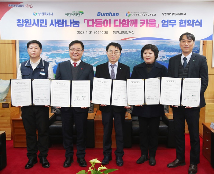| Áö³ 1¿ù 31ÀÏ ¿¸° ¡¸Ã¢¿ø½Ã¹Î »ç¶û ³ª´® ‘´ÙµÕÀÌ ´ÙÇÔ²² Ű¿ò’¡¹ Çù¾à½Ä. ¿ÞÂʺÎÅÍ ÀÌ»ó½Å â¿ø½Ã°ø¹«¿ø³ëµ¿Á¶ÇÕ À§¿øÀå, È«³²Ç¥ â¿ø½ÃÀå, Á¤¿µ½Ä ¹üÇѱ׷ìȸÀå, °¿µÀÓ Ã¢¿ø½Ã¿©¼º´ÜüÇùÀÇȸÀå, Á¶À¯Áø ÃÊ·Ï¿ì»ê °æ³²Áö¿ªº»ºÎÀå. |