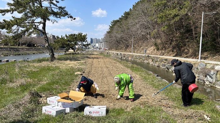 ÀÌ´Â °ÅÁ¦½Ã¿¡¼ ¸Å³â ÃßÁøÇÏ´Â ÀÏ·ù°ÅÁ¦ Ǫ¸¥µµ½Ã °¡²Ù±â»ç¾÷ÀÇ ÀÏȯÀ¸·Î ÃßÁøµÇ¾úÀ¸¸ç, µ¶ºÀ»ê¾à¼öÅÍ ¾ÕÀÇ ¼¶°ø¿ø ÀϺο¡ ÇØ¹¬Àº Ç®µéÀ» °È¾î³»°í µ¹À» °ñ¶ó³»´Â µî »çÀü±â¹Ý Á¶¼º ÈÄ ³ë¶û²ÉâÆ÷ 750º» ¹× º×²É 750º»ÀÇ ¾Ë»Ñ¸®¸¦ ½É¾î, 5~6¿ù °æÀÌ¸é ²ÉµéÀ» ¸ÂÀÌÇÒ ¼ö ÀÖÀ» °ÍÀ¸·Î º¸ÀδÙ.