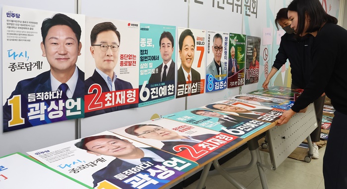 | Á¦22´ë ±¹È¸ÀÇ¿ø¼±°Å ¼±°Åº®º¸ Á¦Ãâ ¸¶°¨ÀÏÀÎ 27ÀÏ ¼¿ï Á¾·Î±¸ ¼±°Å°ü¸®À§¿øÈ¸¿¡¼ °ü°èÀÚµéÀÌ °¢ Èĺ¸ÀÇ ¼±°Åº®º¸¸¦ Á¤¸®Çϰí ÀÖ´Ù. /¿¬ÇÕ´º½º |