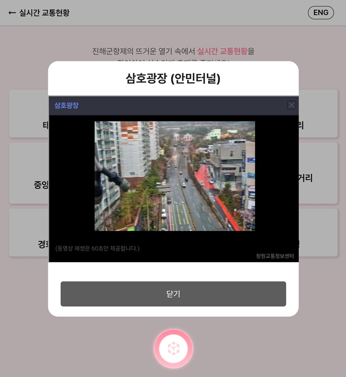 ¾îÇà »ç¿ëÀÚ´Â ‘½Ç½Ã°£ ±³Åë ÇöȲ’ ÅÇ¿¡¼ ÁøÇØ¿¡ ¼³Ä¡µÈ 9°³ÀÇ CCTV¸¦ ÅëÇØ ½Ã³» ±³ÅëÁ¤º¸¸¦ ½Ç½Ã°£À¸·Î È®ÀÎÇÒ ¼ö ÀÖ´Ù.