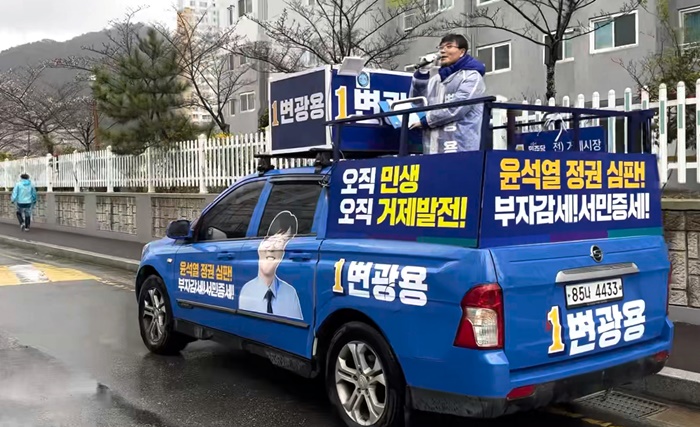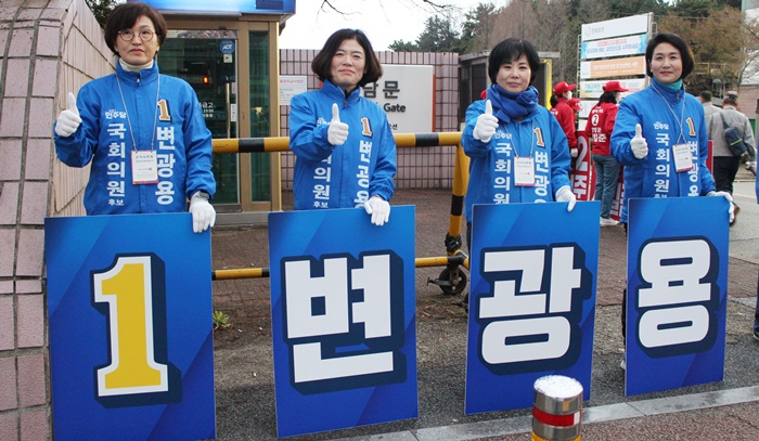 [½Ã»çÄÚ¸®¾ÆÀú³Î=Á¤Á¾¹Î ¼±ÀÓ±âÀÚ] 4.10 ÃѼ± º» ¼±°ÅÀÇ ¸·ÀÌ ¿À¸¥ 28ÀÏ °ÅÁ¦½Ã ¾ÆÁÖµ¿ ÇÑÈ¿À¼Ç ³²¹® Ãâ±Ù±æ¿¡¼ ´õºÒ¾î¹ÎÁÖ´ç º¯±¤¿ë ±¹È¸ÀÇ¿ø È帰¡ °£ÀýÇÔ ´ãÀº Å« Àý·Î ¼±°Å ¿îµ¿¿¡ µ¹ÀÔÇß´Ù.