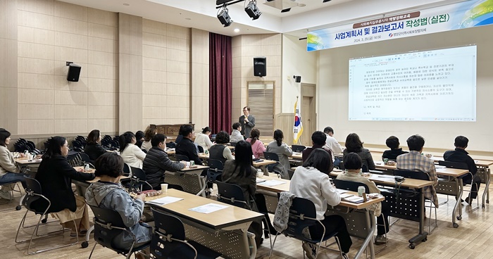 [½Ã»çÄÚ¸®¾ÆÀú³Î=±è¿¬ÇÐ ±âÀÚ] ¿µ¾ç±º Áö¿ª»çȸº¸ÀåÇùÀÇü(°øµ¿À§¿øÀå ¿ÀµµÃ¢, ±è±æµ¿)´Â Áö³ 29ÀÏ ¿ÀÈÄ 2½Ã Á¾ÇÕº¹Áöȸ°ü¿¡¼ ½Ç¹«ºÐ°ú, »çȸº¹Áö±â°ü ¹× ´Üü ½Ç¹« Á¾»çÀÚ 30¿© ¸íÀ» ´ë»óÀ¸·Î‘»ç¾÷°èȹ¼ ¹× °á°úº¸°í¼ ÀÛ¼º¹ý(½ÇÀü)’¿¡ °üÇÑ ³»¿ëÀ¸·Î ¿ª·® °È ±³À°À» ½ÃÇàÇß´Ù.