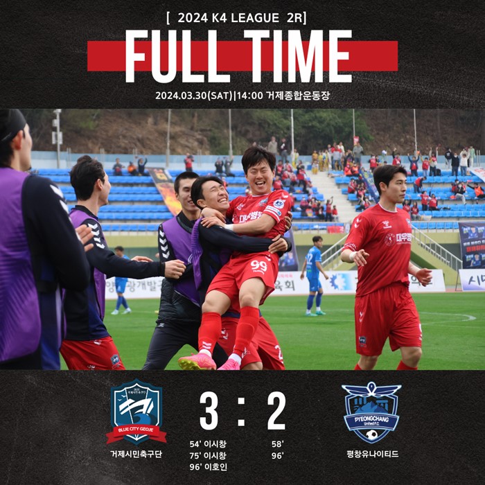 Àü³âµµ K4¸®±× ÃÖÁ¾ 3À§¿Í Æò±Õ Ȩ °æ±â °üÁß ¼ö Àüü 2À§·Î â´Ü ÀÌÈÄ ¿ª´ë ÃÖ°íÀÇ ÆûÀ» º¸¿©ÁÖ°í ÀÖ´Â °ÅÁ¦½Ã¹ÎÃ౸´ÜÀº 2024½ÃÁð K4¸®±× ÃÖÁ¾ ¿ì½ÂÀ» À§ÇØ ½º½º·Î¸¦ ´ã±ÝÁúÇÏ¸ç ½Ç·ÂÀ» °¥°í´Û¾Æ ù Ȩ °³¸·Àü¿¡ ÃâÀüÇß´Ù.