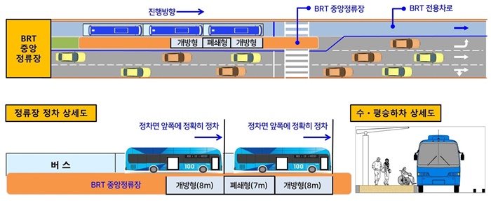±âÁ¸ °¡·Îº¯ Á¤·ùÀå¿¡¼´Â ¹ö½º°¡ Á¦ À§Ä¡¿¡ Á¤Â÷ÇÏÁö ¾Ê¾Æ µµ·Î±îÁö ³»·Á°¡ ž½ÂÇßÀ¸³ª, BRT Áß¾ÓÁ¤·ùÀå¿¡¼´Â ¹ö½º°¡ Á¤È®ÇÑ À§Ä¡¿¡ Á¤Â÷µÇ°í ¹ö½º¿Í Á¤·ùÀå ³ôÀ̰¡ ¸Â¾Æ ±³Åë¾àÀÚµµ ½±°Ô ÀÌ¿ëÀÌ °¡´ÉÇØÁø´Ù.