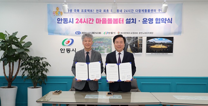 [½Ã»çÄÚ¸®¾ÆÀú³Î=±è¿¬ÇÐ ±âÀÚ] ¾Èµ¿½Ã´Â 2ÀÏ (Àç)´ëÇÑ¿¹¼ö±³Àå·Îȸ °æ¾È³ëȸÀ¯ÁöÀç´Ü(´ëÇ¥ÀÌ»ç ±è½ÂÇÐ)°ú 24½Ã°£ ´ÙÇÔ²²µ¹º½¼¾ÅÍ ¼³Ä¡·¿î¿µ¿¡ °üÇÑ Çù¾àÀ» ü°áÇß´Ù.