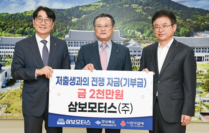 ´ë±¸¿¡ ÀÖ´Â ÀÚµ¿Â÷ºÎǰ ±â¾÷ÀÎ »ïº¸¸ðÅͽº(ÁÖ)(´ëÇ¥ ÀÌÀçÇÏ)°¡ ÀúÃâ»ý ±Øº¹ ¼º±Ý 2,000¸¸¿øÀ», ´ëÇÑÀü¹®°Ç¼³Çùȸ °æ»óºÏµµÈ¸(ÀÌÁ¤Ã¶ ȸÀå)°¡ ÀúÃâ»ý ±Øº¹ ¼º±Ý 2,000¸¸¿ø°ú ÀåÇÐ±Ý 1,000¸¸¿ø(ÃÑ 3,000¸¸¿ø)À», °æºÏ»çȸº¹Áö°øµ¿¸ð±Ýȸ ÀÓÁ÷¿ø Àϵ¿ÀÌ 1,170¸¸¿øÀ» °¢°¢ °æºÏ»çȸº¹Áö°øµ¿¸ð±Ýȸ¸¦ ÅëÇØ °æºÏµµ¿¡ Àü´ÞÇß´Ù.