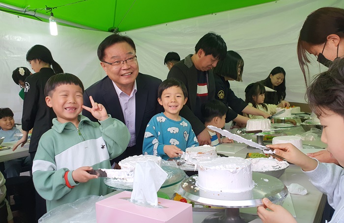 | È«³²Ç¥ â¿ø½ÃÀåÀÌ ¿Â°¡Á·Ã¼ÇèºÎ½º¸¦ ¹æ¹®ÇØ ¼öÁ¦ÄÉÀÌÅ©¸¦ ¸¸µé°í ÀÖ´Â ¾î¸°À̵é°ú ±â³ä»çÁøÀ» Âï°í ÀÖ´Ù. |