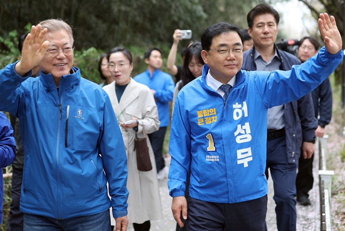 | ¹®ÀçÀÎ Àü ´ëÅë·ÉÀÌ 4ÀÏ ¿ÀÈÄ °æ³² â¿ø½Ã ¼º»ê±¸ ³»µ¿°ø¿øÀ» ´õºÒ¾î¹ÎÁÖ´ç â¿ø¼º»ê Ç㼺¹« Èĺ¸¿Í »êÃ¥ÇÏ¸ç ½Ã¹Î¿¡°Ô ÀλçÇϰí ÀÖ´Ù. /¿¬ÇÕ´º½º |
